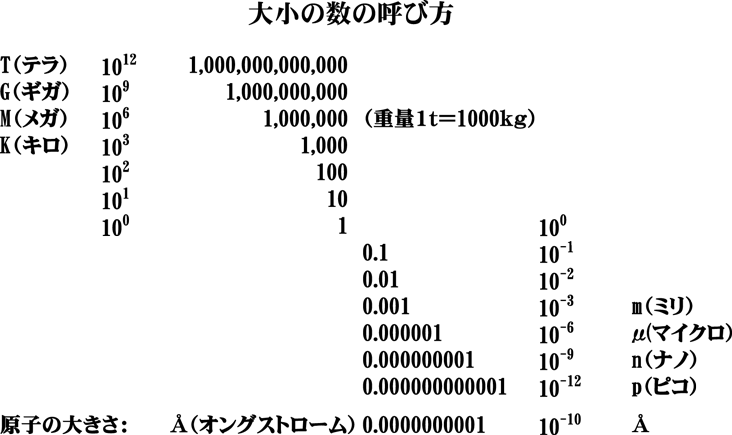 最近、パソコン・スマホの周辺とかでよくきく キロ・メガ・ギガ・テラ とかミリ・マイクロ・ナノ とかの読み方が意味している大きさと