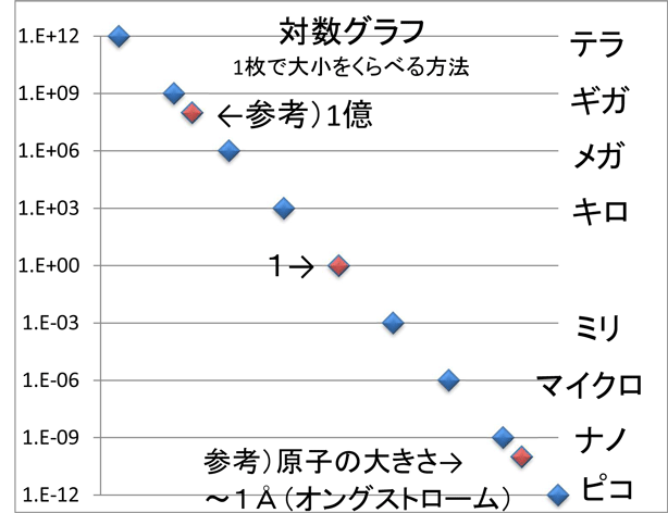 その とっても大きい・とっても小さい を一気に較べられる「対数(たいすう)グラフ」。