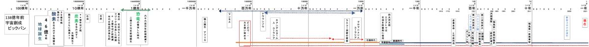 【今と恐竜が居た頃や宇宙ができた頃の時の隔たり(左は過去 右が現在)】も